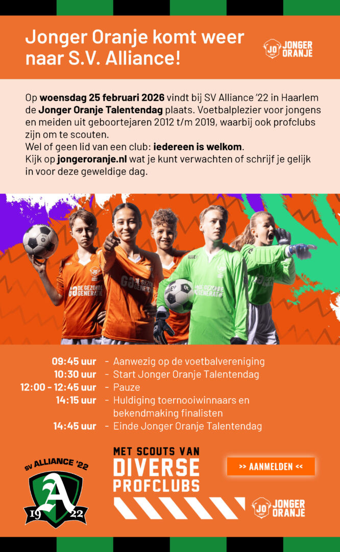 Droom jij van profvoetbal? Jonger Oranje is weer bij Alliance!