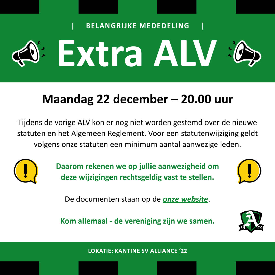 Wij nodigen alle leden van harte uit om aanwezig te zijn, zodat we deze belangrijke aanpassingen samen en rechtsgeldig kunnen afronden.