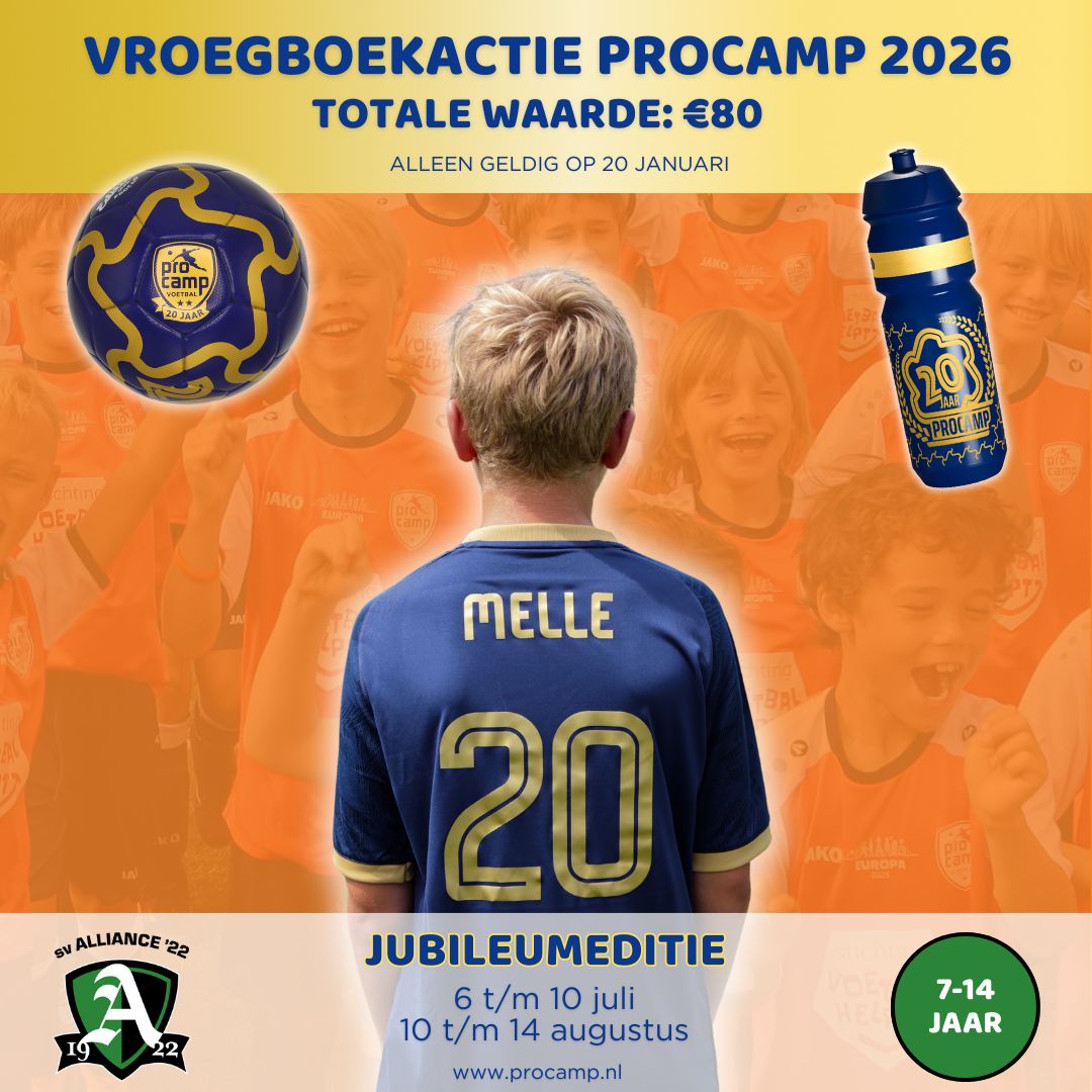 Al jaren is ProCamp (#1 van Nederland) onze partner in de zomervakantie op het gebied van voetbalkampen. Ook dit jaar hebben ze een gave openingsactie bij de start van de inschrijvingen.