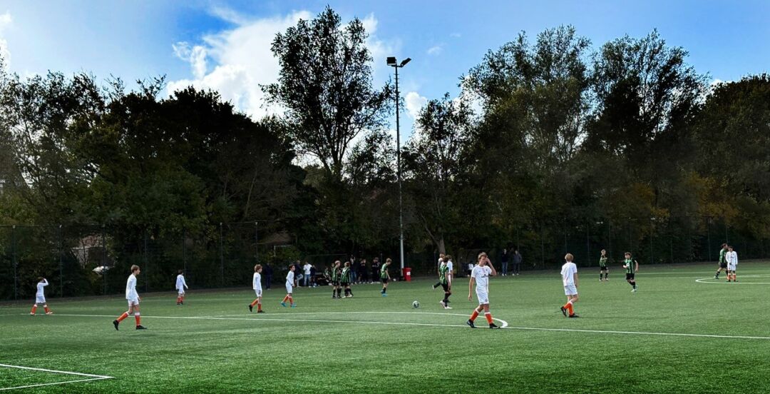 Vandaag stond om 12.15 Alliance’22 o14-3 tegen Bloemendaal o14-3 op het programma. Met een stevige westenwind , een dreigende lucht en paraplu in de aanslag mocht Alliance de eerste helft tegenwind spelen. Bloemendaal begon voortvarend en het grootste deel van de eerste helft werd dan ook op de helft van Alliance gespeeld. Het werd een wedstrijd waar onder de druk uit gevoetbald moest worden. In de eerste 20 minuten waren er geen grote kansen van beide ploegen, maar toen ineens was daar een snelle uitbraak van Alliance, met een mooie assist van Matias en een goal van Aiden. Toch redelijk onverwacht 1-0.